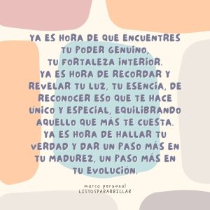 Ya es hora de que encuentres tu poder genuino, tu fortaleza interior.